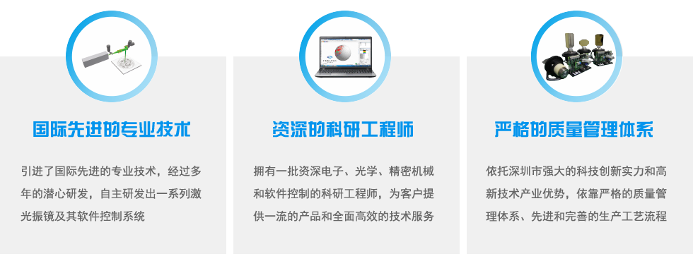 公司自2008年成立以來,引進(jìn)了國際先進(jìn)的專業(yè)技術(shù),經(jīng)過多年的潛心研發(fā),自主研發(fā)出一系列激光振鏡及其軟件控制系統(tǒng)。目前已廣泛應(yīng)用于舞臺激光燈、醫(yī)療美容、3D激光打印、激光標(biāo)刻和科研及工業(yè)應(yīng)用等多個領(lǐng)域。 公司擁有一批資深電子、光學(xué)、精密機(jī)械和軟件控制的科研工程師,依托深圳市強(qiáng)大的科技創(chuàng)新實力和高新技術(shù)產(chǎn)業(yè)優(yōu)勢,依靠嚴(yán)格的質(zhì)量管理體系、先進(jìn)和完善的生產(chǎn)工藝流程,為客戶提供的產(chǎn)品和全面高效的技術(shù)服務(wù)。目前在國內(nèi)舞臺激光燈、醫(yī)療美容、3D激光打印等應(yīng)用中占50%以上的市場份額,并強(qiáng)勢進(jìn)軍激光標(biāo)刻應(yīng)用。